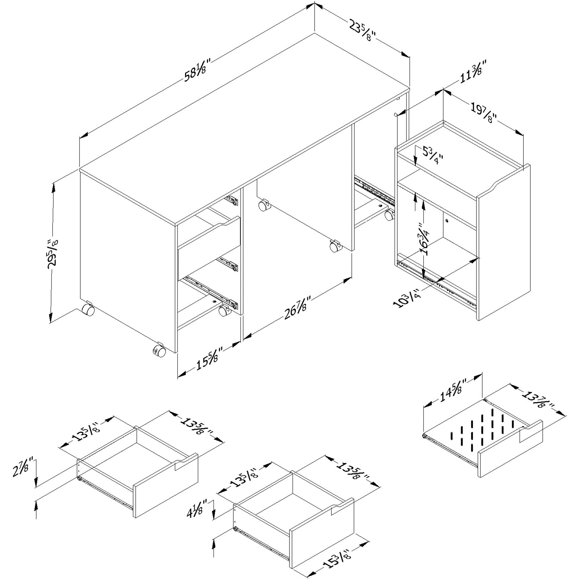 Amazon Com South Shore Crea Craft Table On Wheels With Sliding Shelf Storage Drawers And Scratchproof Surface Pure White Home Kitchen